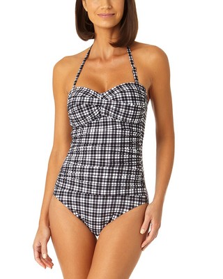Женская цельная бандо с закрученной спереди и сборкой Anne Cole, Bkwh