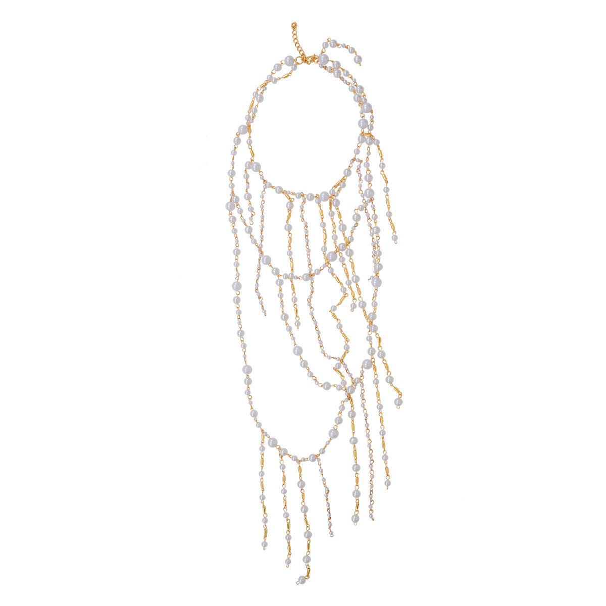 Женская цепочка для свитера ZAA Pearl Waterfall: Высококачественное, универсальное, объемное длинное ожерелье для осени/зимы белый