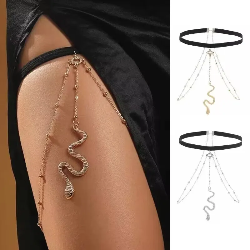 Женская цепочка со змеиным принтом, эластичная цепочка для тела в готическом стиле