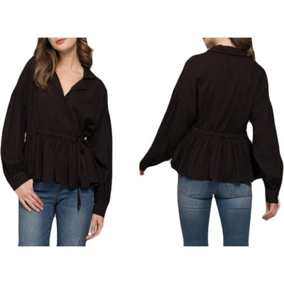 Женская черная блузка с запахом Moon River, BHFO 8559, Черный