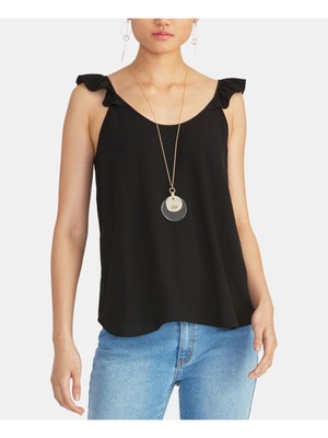Женская черная майка RACHEL ROY с рюшами и круглым вырезом без рукавов Размер, Черный
