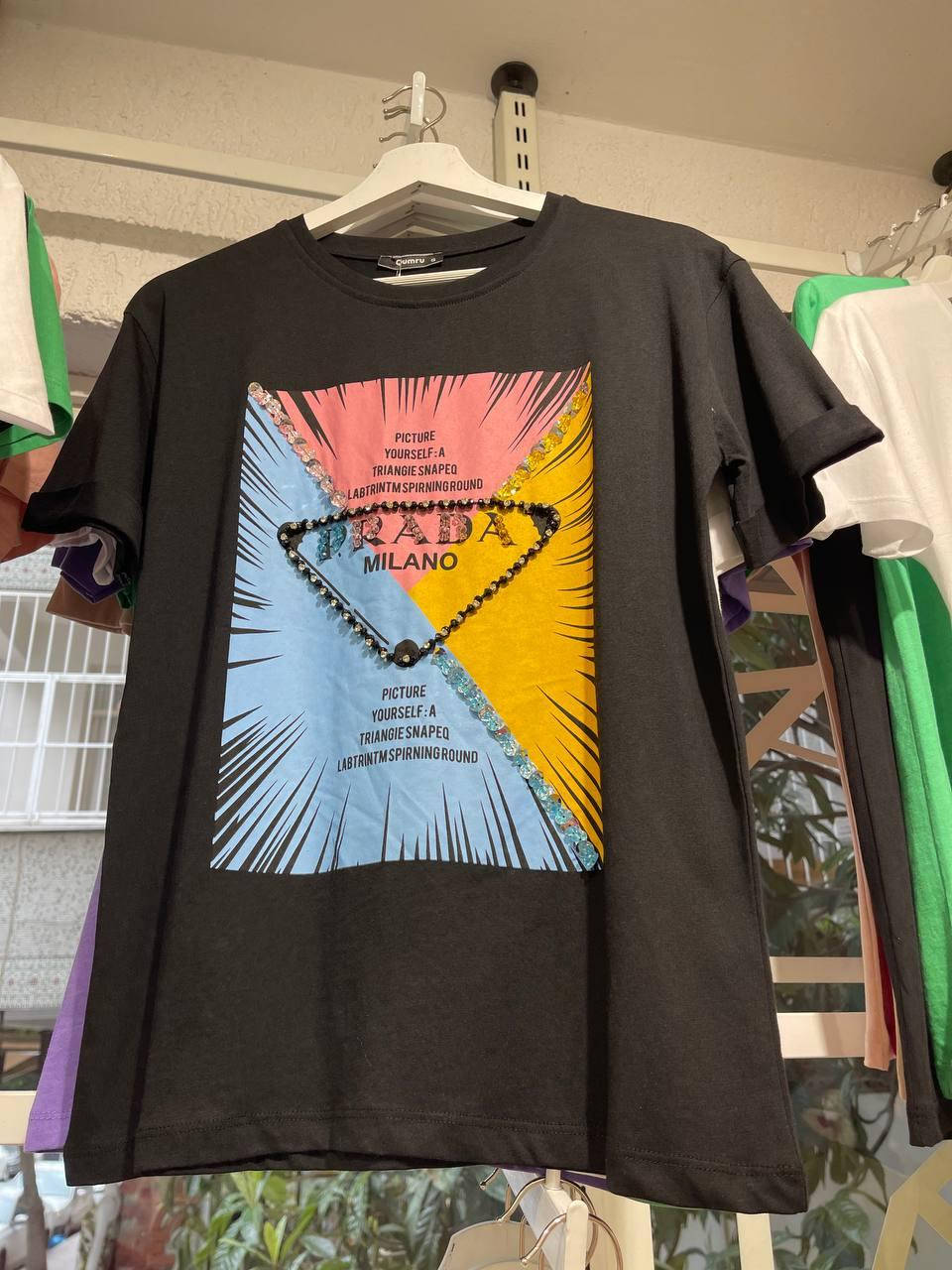 Принт очень качественный. Камешки крепко закреплены. В некоторых футболка полностью ручная работа.