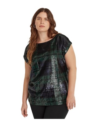 Женская черная хлопковая футболка с короткими рукавами в клетку RALPH LAUREN Plus, Черный