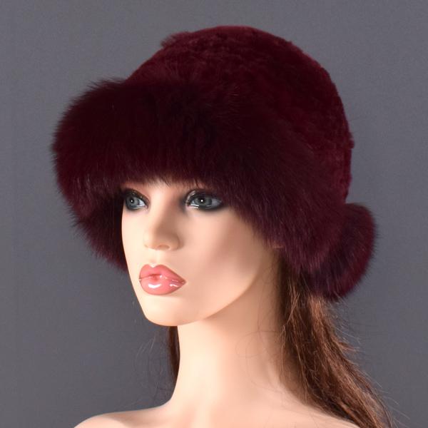 Женская шапка из натурального меха кролика и лисы, защита ушей, пушистая шапка-бини, модная вязаная шапка, теплая зимняя меховая шапка для женщин, для лыж One Size винный