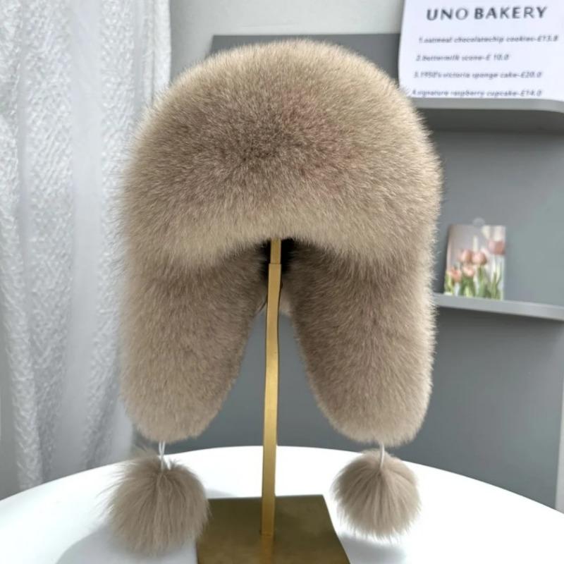 Женская шапка-ушанка из лисьего меха, защищающая уши, модная, роскошная шапка-бомбер из натурального лисьего меха, зимняя уличная шапка из мягкой овчины для девочек 53cm-60cm хаки