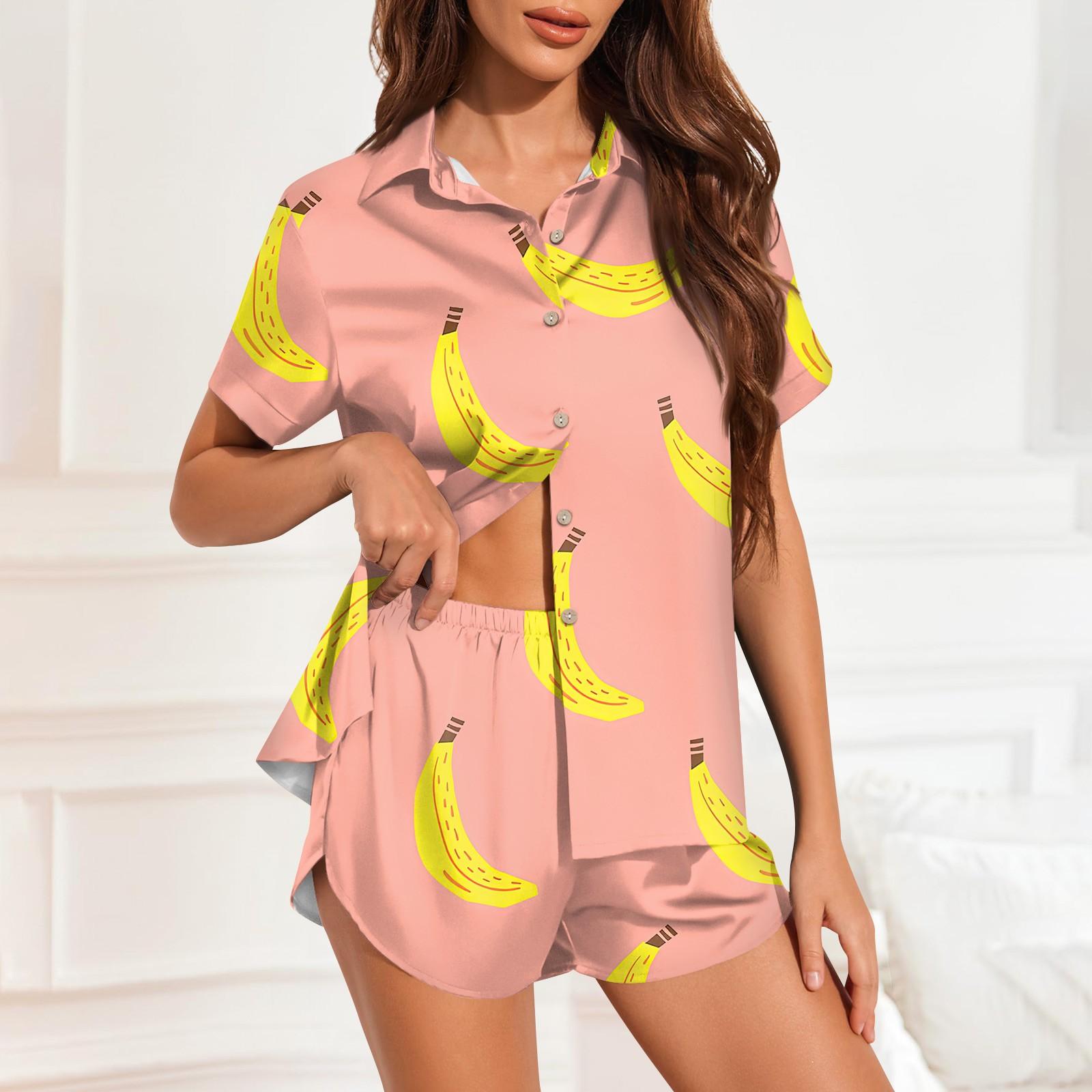 Женская шелковая пижама с пуговицами, домашняя одежда, принт со звездами, короткий рукав, атласный пижамный комплект из 2 предметов XL жёлтый