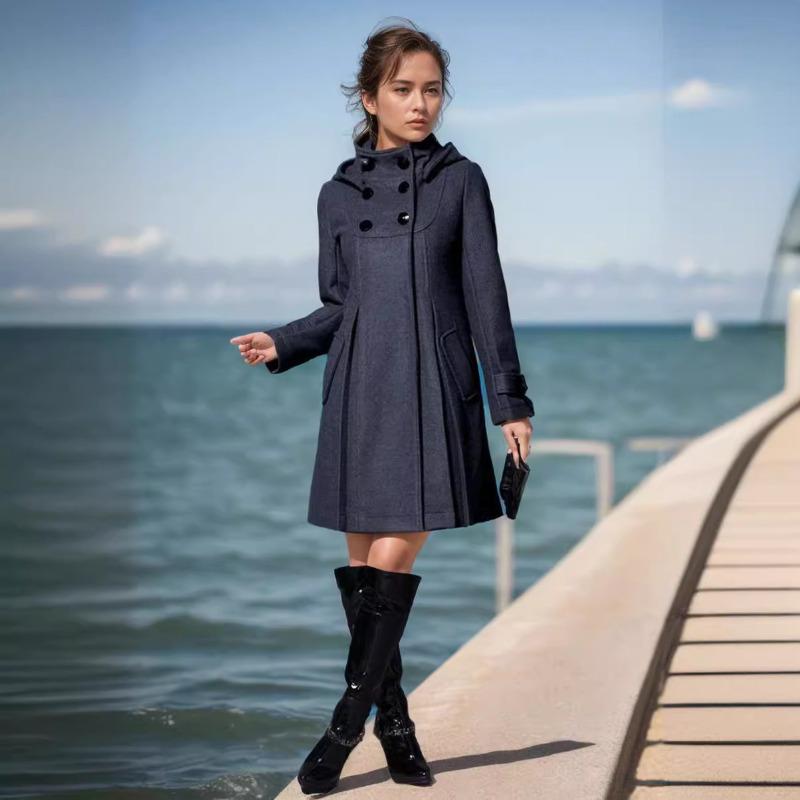 Женская шерстяная куртка Женская одежда Среднее и длинное шерстяное пальто Тренч с капюшоном XXXL