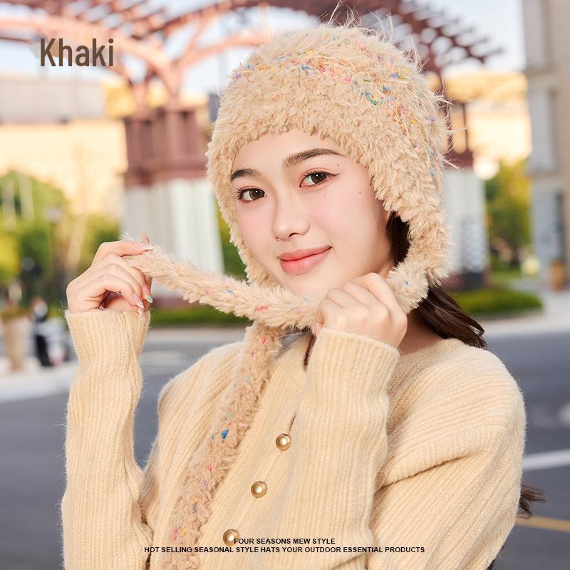 Женская шерстяная шапка в корейском стиле высшего качества — теплая, ветрозащитная и с защитой ушей для осени и зимы One Size хаки