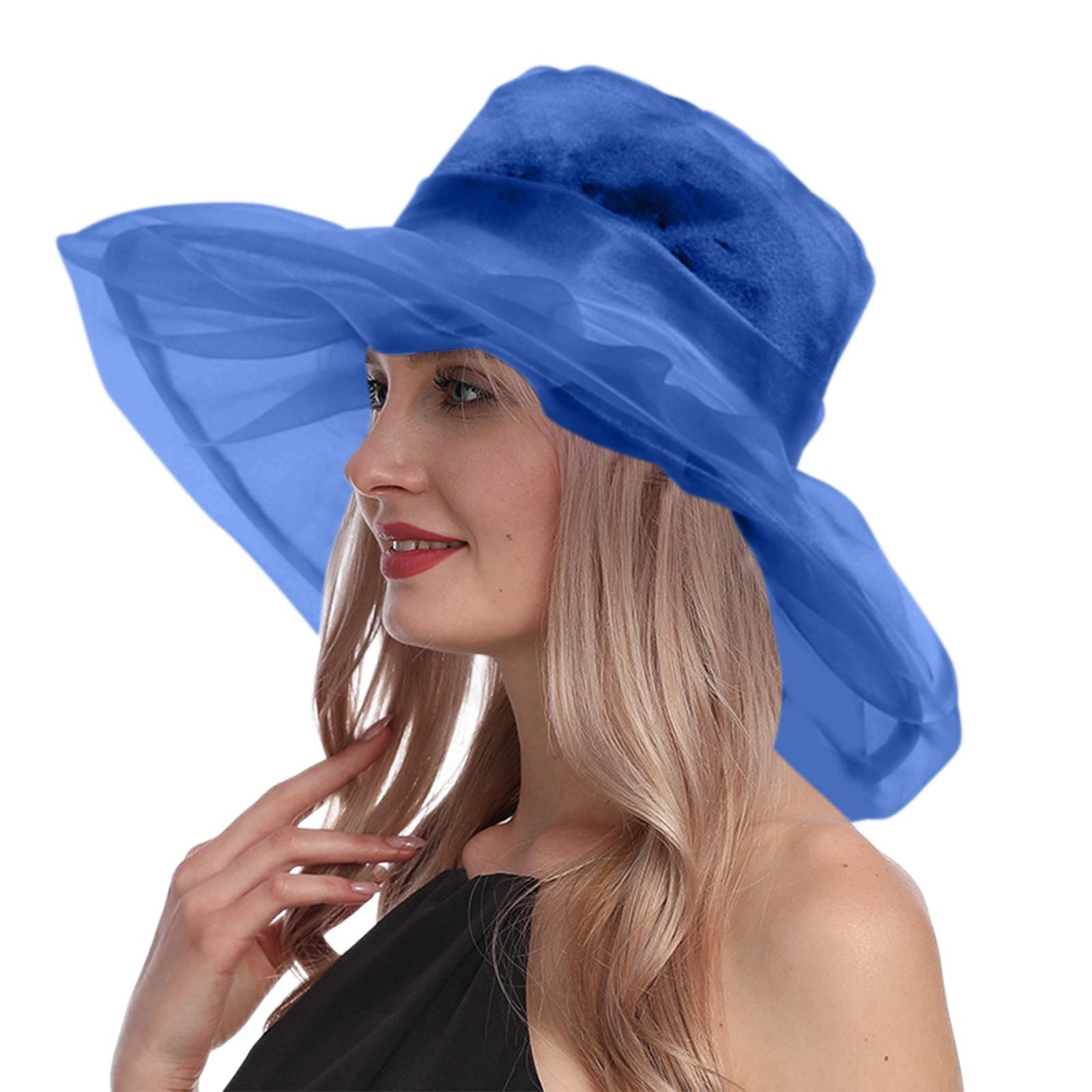 Женская широкая солнцезащитная шляпа из органзы, складная пляжная шляпа с защитой от ультрафиолета One Size синий