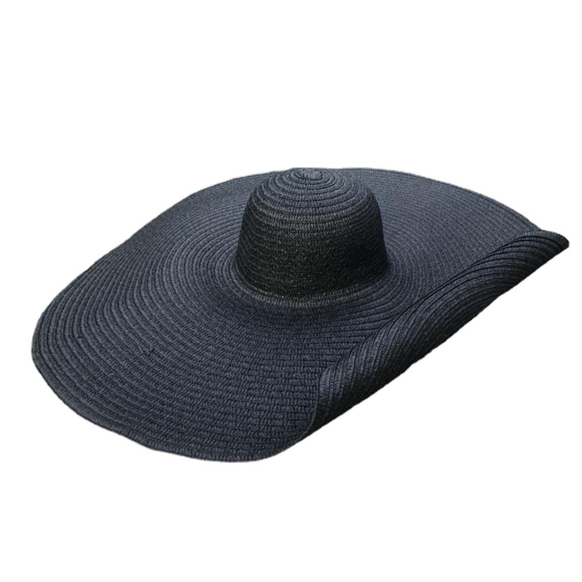 Женская широкополая соломенная шляпа, летняя складная, рулонная, мягкая, пляжная кепка, большая, с карнизом, шляпа от солнца для чёрный