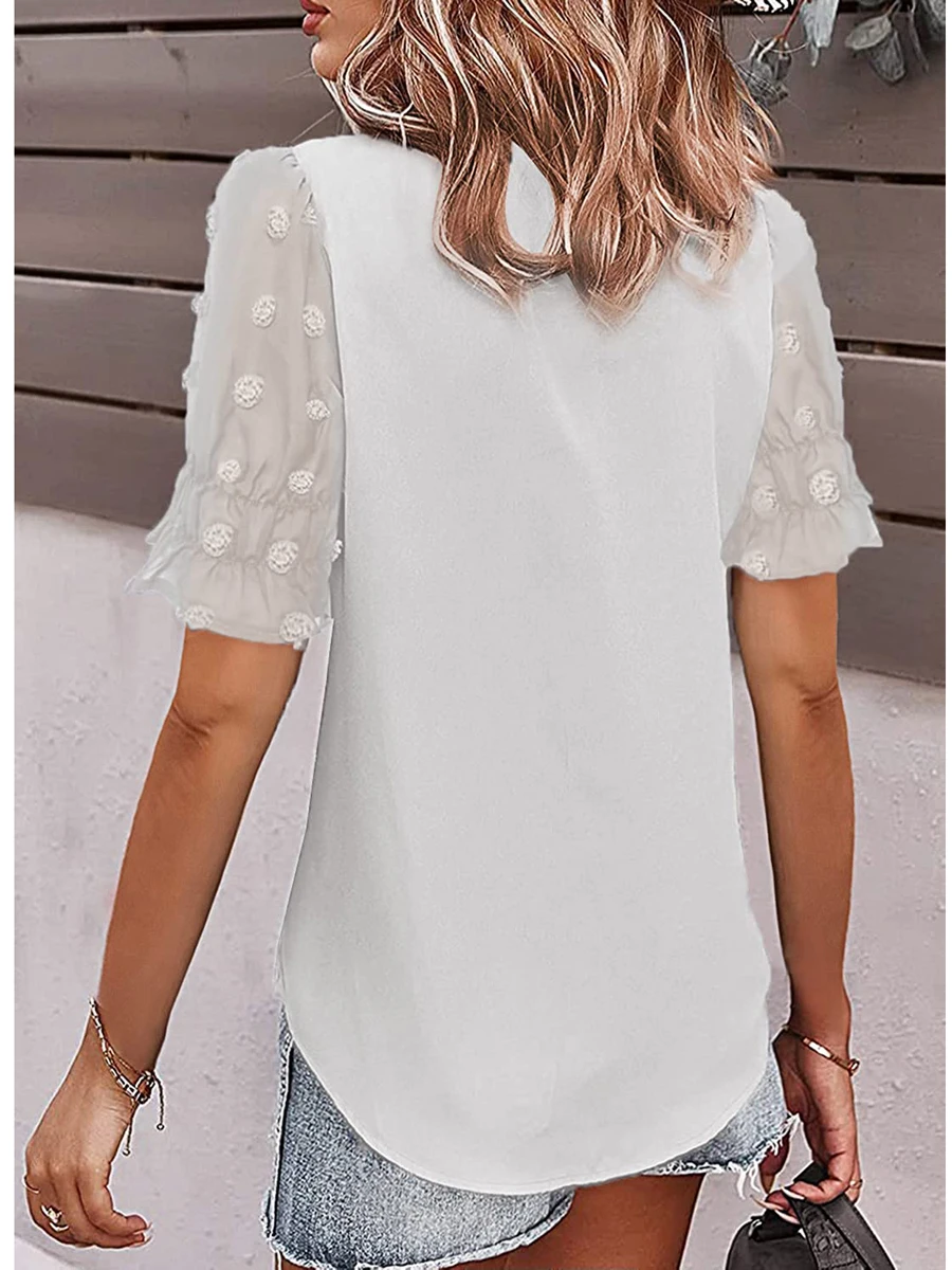 Женская шифоновая блузка в горошек, с коротким рукавом и V-образным вырезом