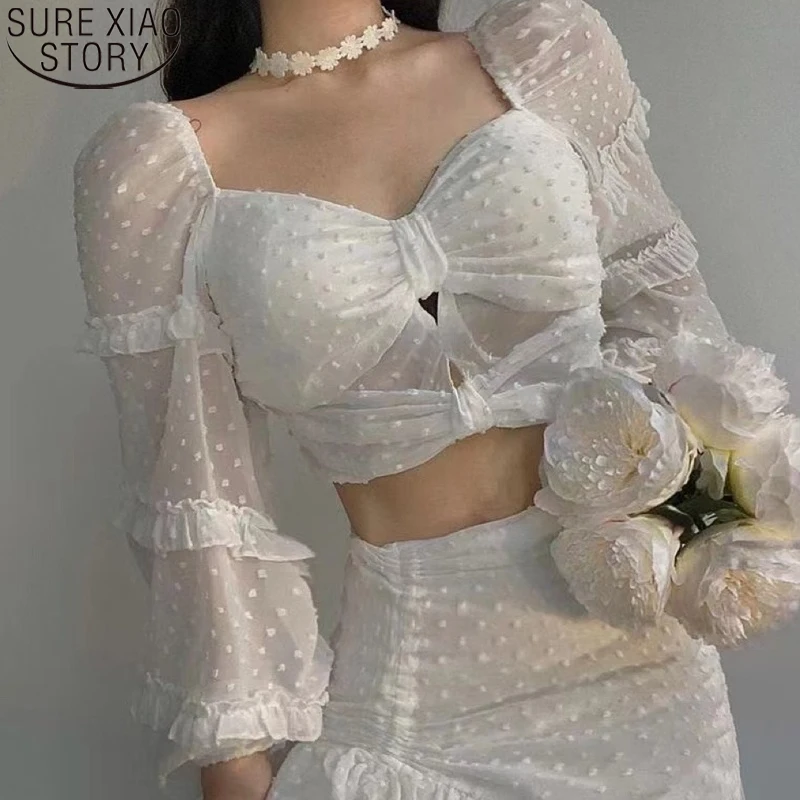 Женская шифоновая блузка с длинным рукавом, открытыми плечами и буффами на рукавах