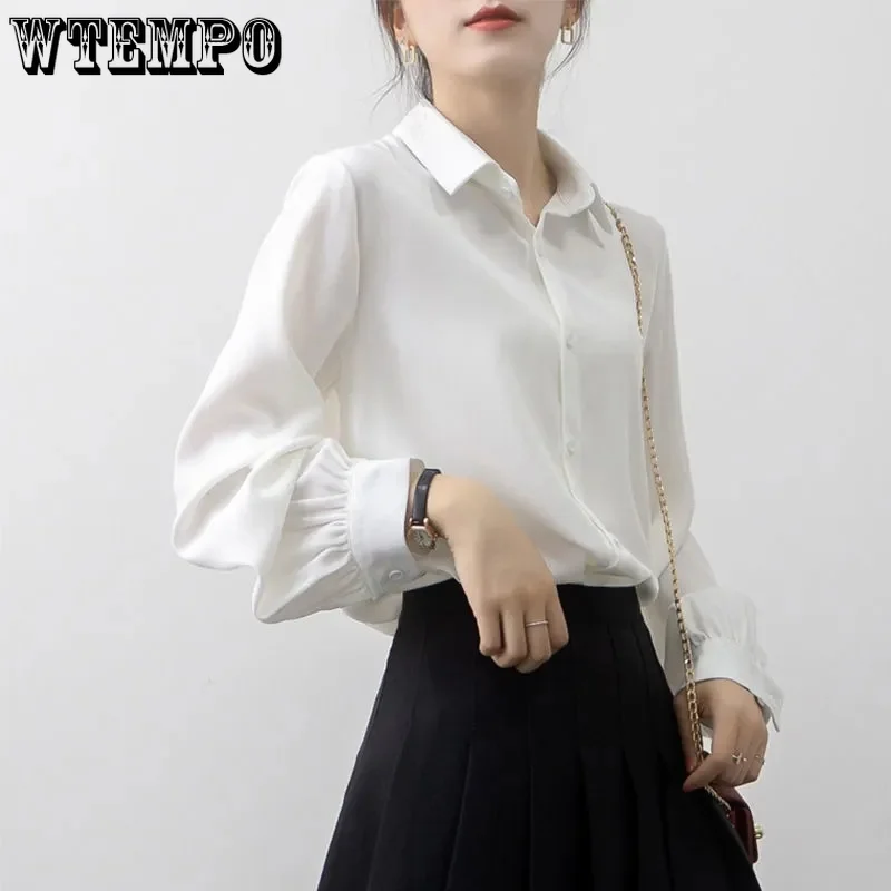Женская шифоновая блузка с длинным рукавом-фонариком, свободного покроя
