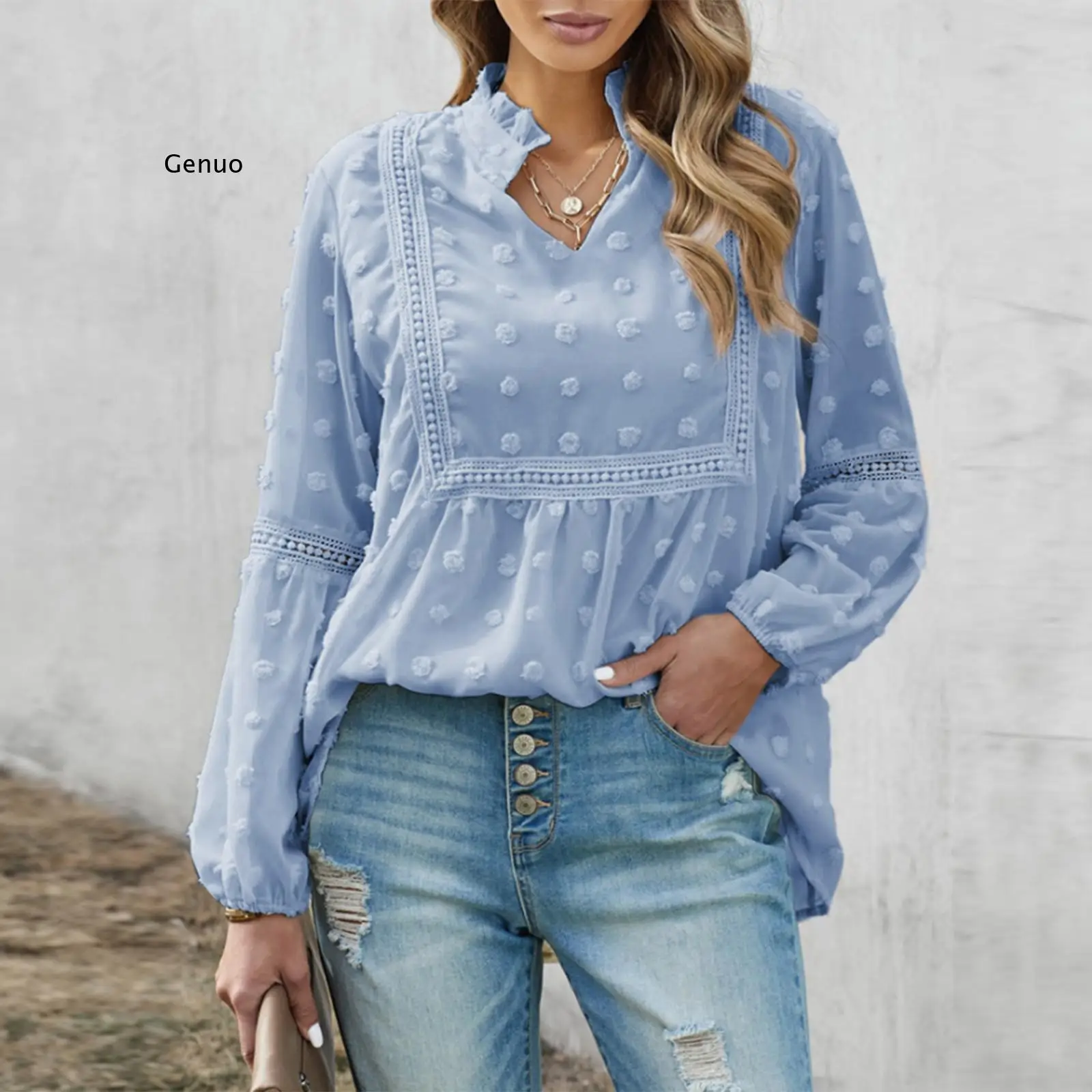 Женская шифоновая блузка с длинным рукавом-фонариком и V-образным вырезом