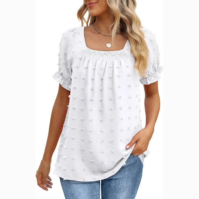 Женская шифоновая блузка с коротким рукавом, квадратным вырезом и буффами на рукавах