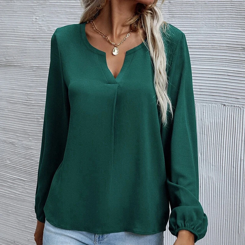 Женская шифоновая блузка с V-образным вырезом, с длинным рукавом