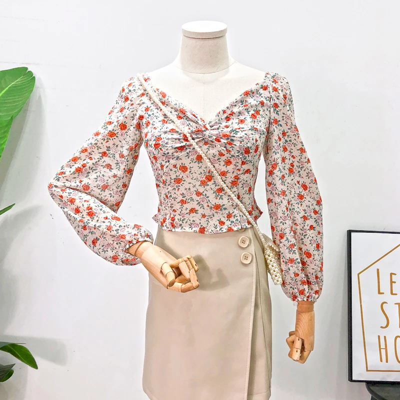 Женская шифоновая блузка Dasswei, элегантный цветочный топ с вырезом-лодочкой и длинными пышными рукавами, лето 2020