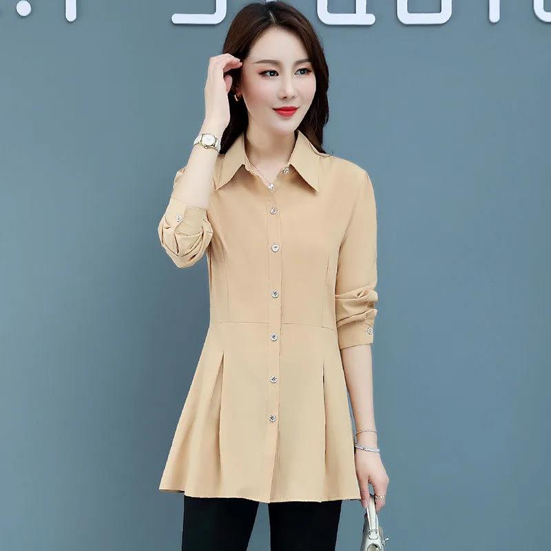 Женская шифоновая рубашка со складками, летний тонкий кардиган, однотонная рубашка на пуговицах, повседневная тонкая футболка M хаки