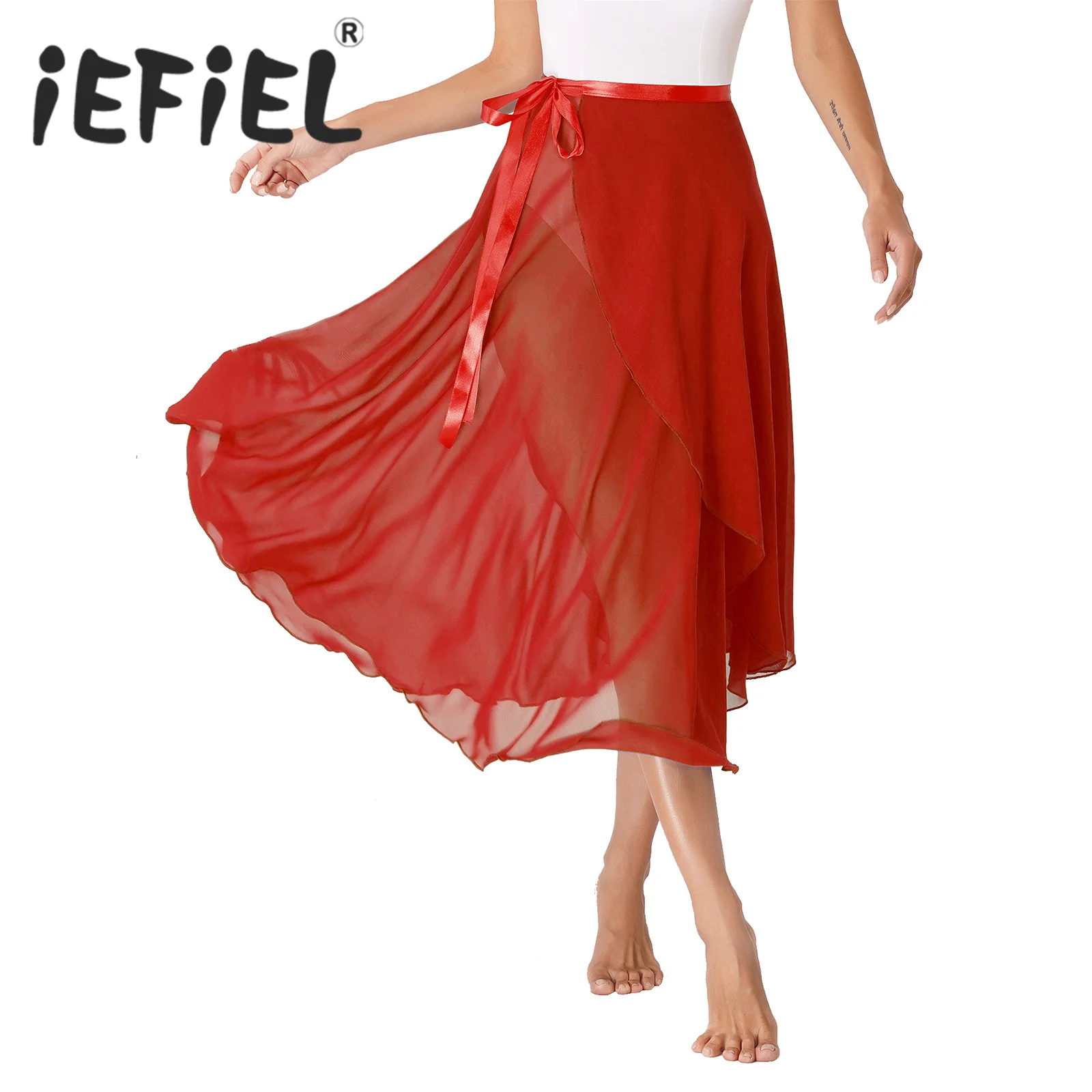 Женская шифоновая юбка с высокой талией, Однотонная юбка средней длины для современных танцев