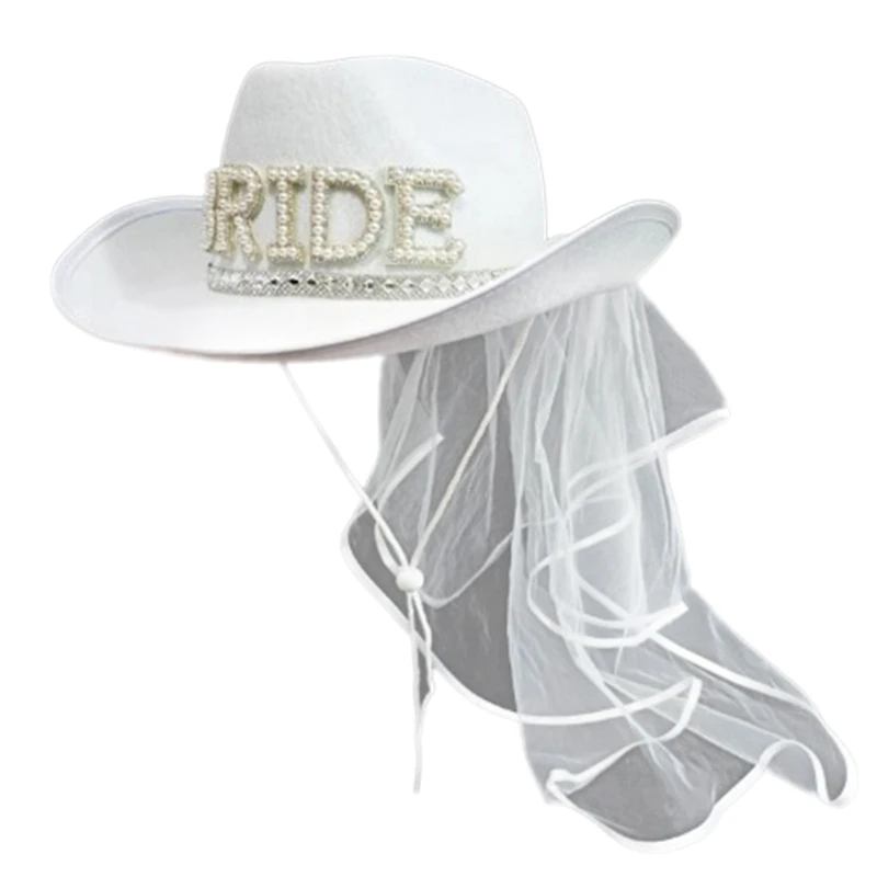 Женская шляпа Белая элегантная шляпа Cowgirl с вуалью реквизит для свадебного фото костюма невесты