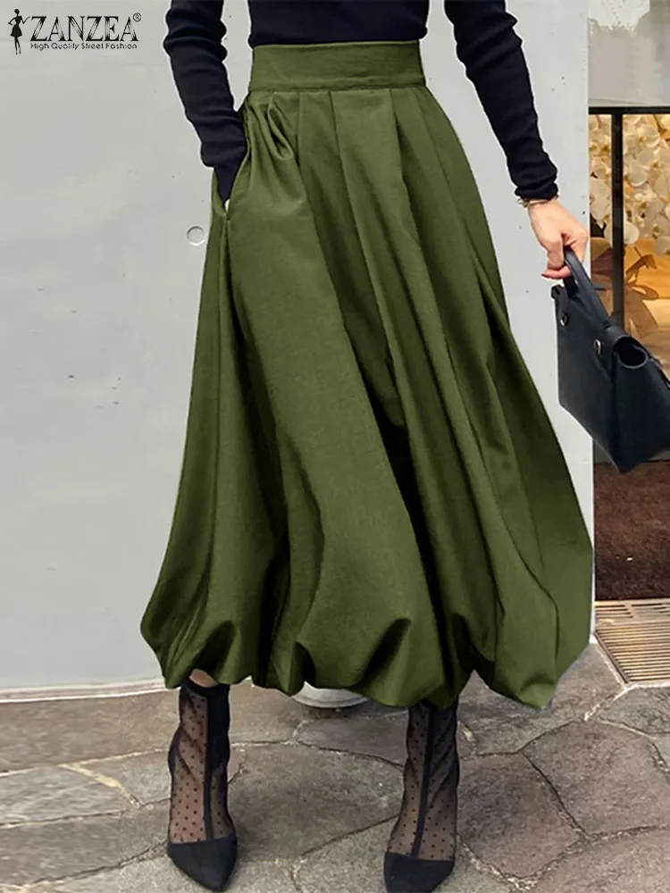 Женская элегантная Юбка-миди ZANZEA 2022, модная плиссированная юбка-трапеция с высокой талией в Корейском стиле, уличная одежда, длинные юбки