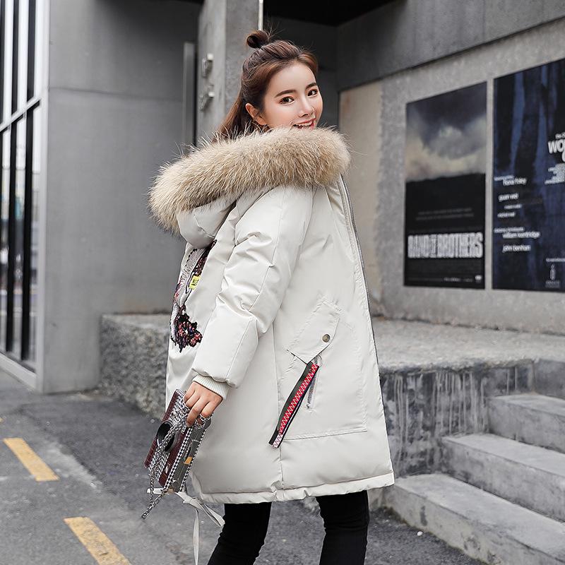 Женская элегантная длинная куртка с большим меховым воротником и капюшоном, пуховые парки, толстое теплое пальто с хлопковой подкладкой