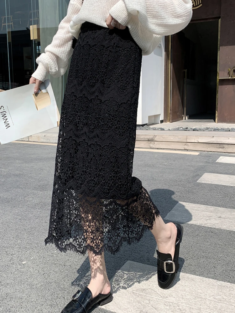 Женская элегантная кружевная юбка, юбки до середины икры с эластичным поясом, Весенняя кружевная юбка для женщин 2023