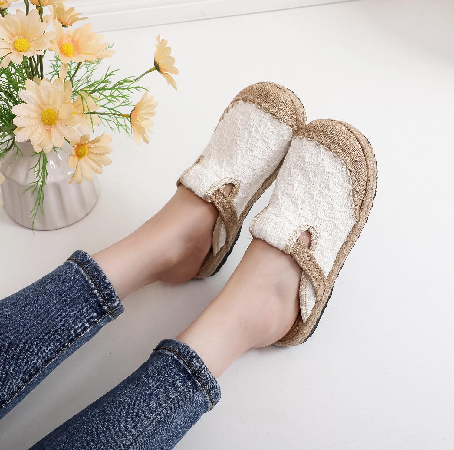 2025 Весна и Осень Женская Элегантная Льняная Обувь в Национальном Стиле - Дышащие, Большие Носки, Тапочки в Стиле Колледжа 36 (Regular, slippers +1 size) белый