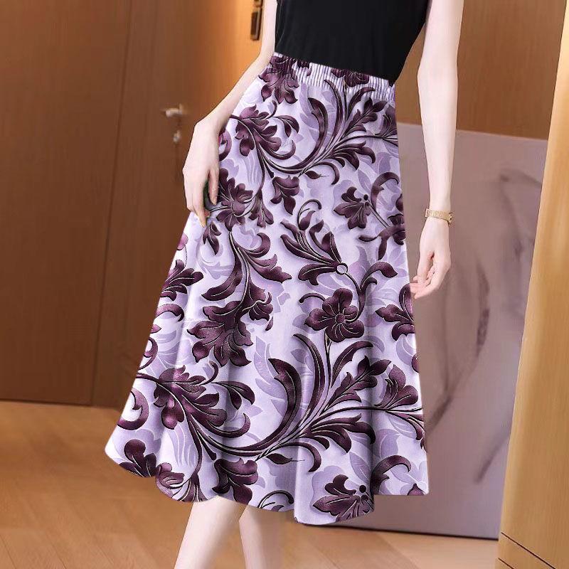Женская юбка в стиле ретро с принтом, летняя, с эластичной резинкой на талии, средней длины, с цветочным принтом и высокой талией 2XL