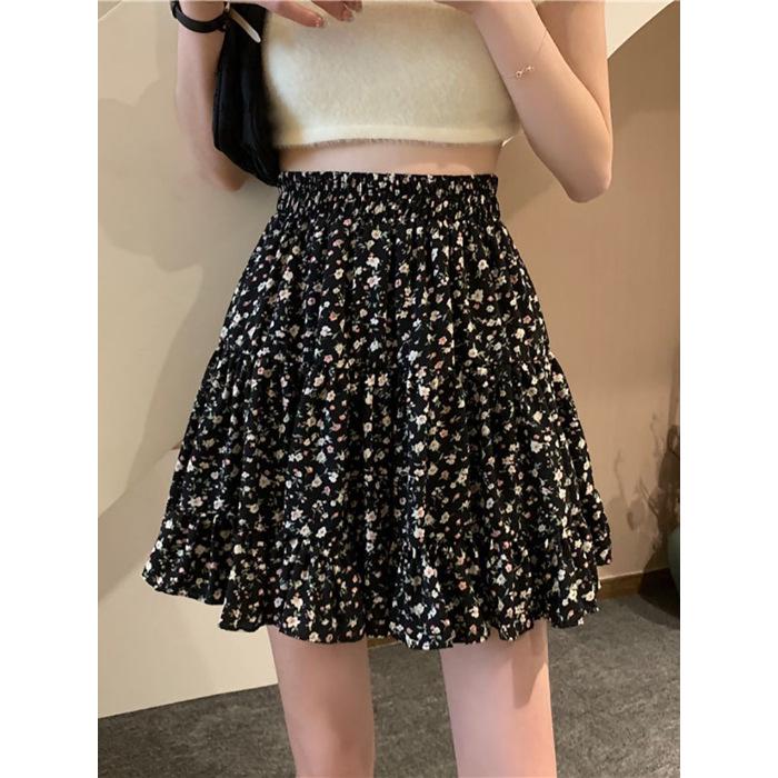 Женская юбка миди с оборками и цветочным принтом в стиле ретро - Летняя милая эластичная юбка А-силуэта с высокой талией L