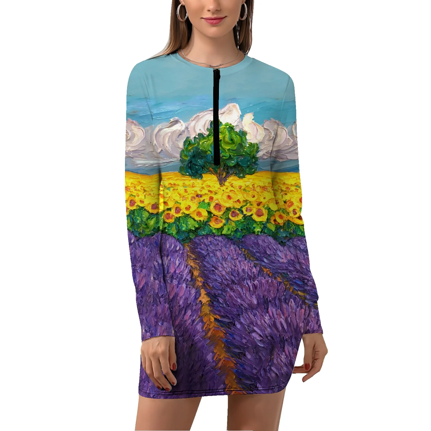 Женская юбка на молнии с принтом из натуральных цветов и травы, Новинка осени 2022, Женская Повседневная сумка с длинным рукавом, юбка на бедрах