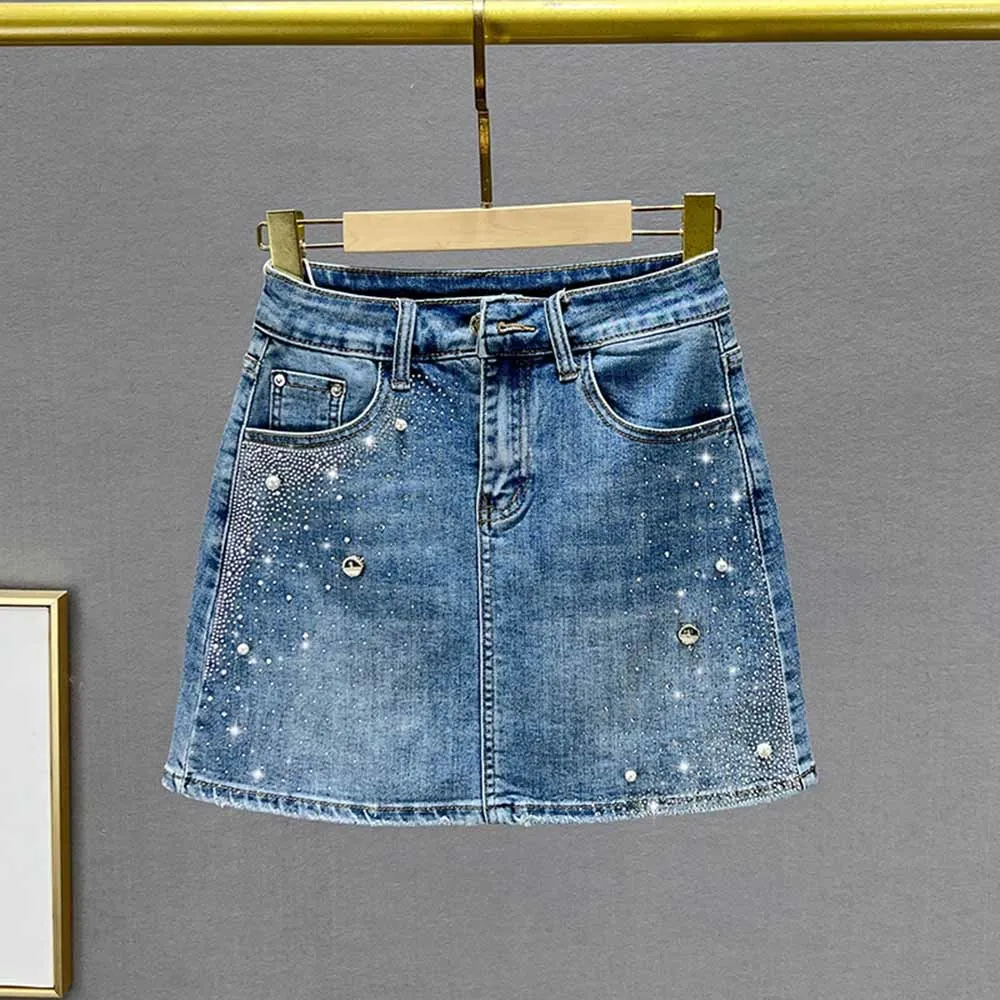 Женская юбка с бусинами, Летняя короткая юбка с высокой талией, трапециевидная мини-юбка, 2022