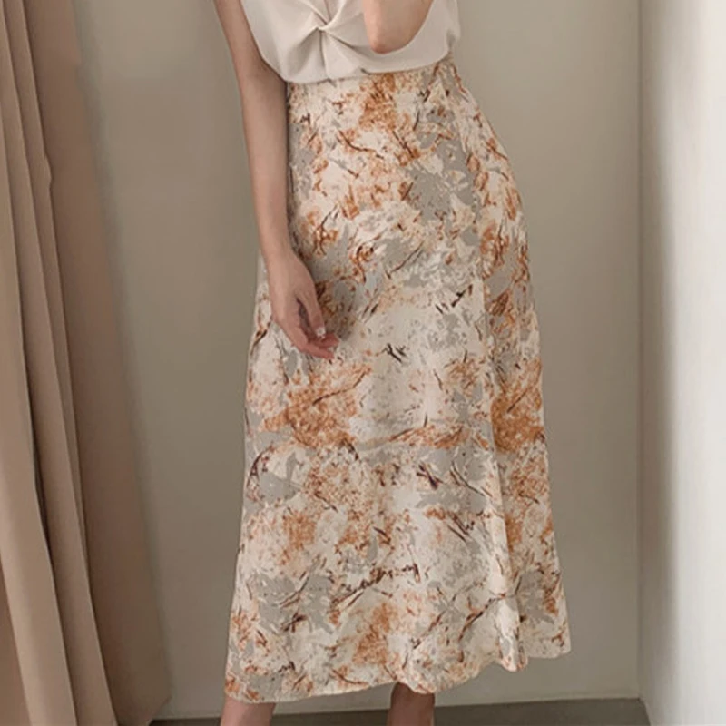 Женская юбка с оборками, винтажная юбка средней длины с цветочным принтом и поясом на резинке, в Корейском стиле, лето 2022