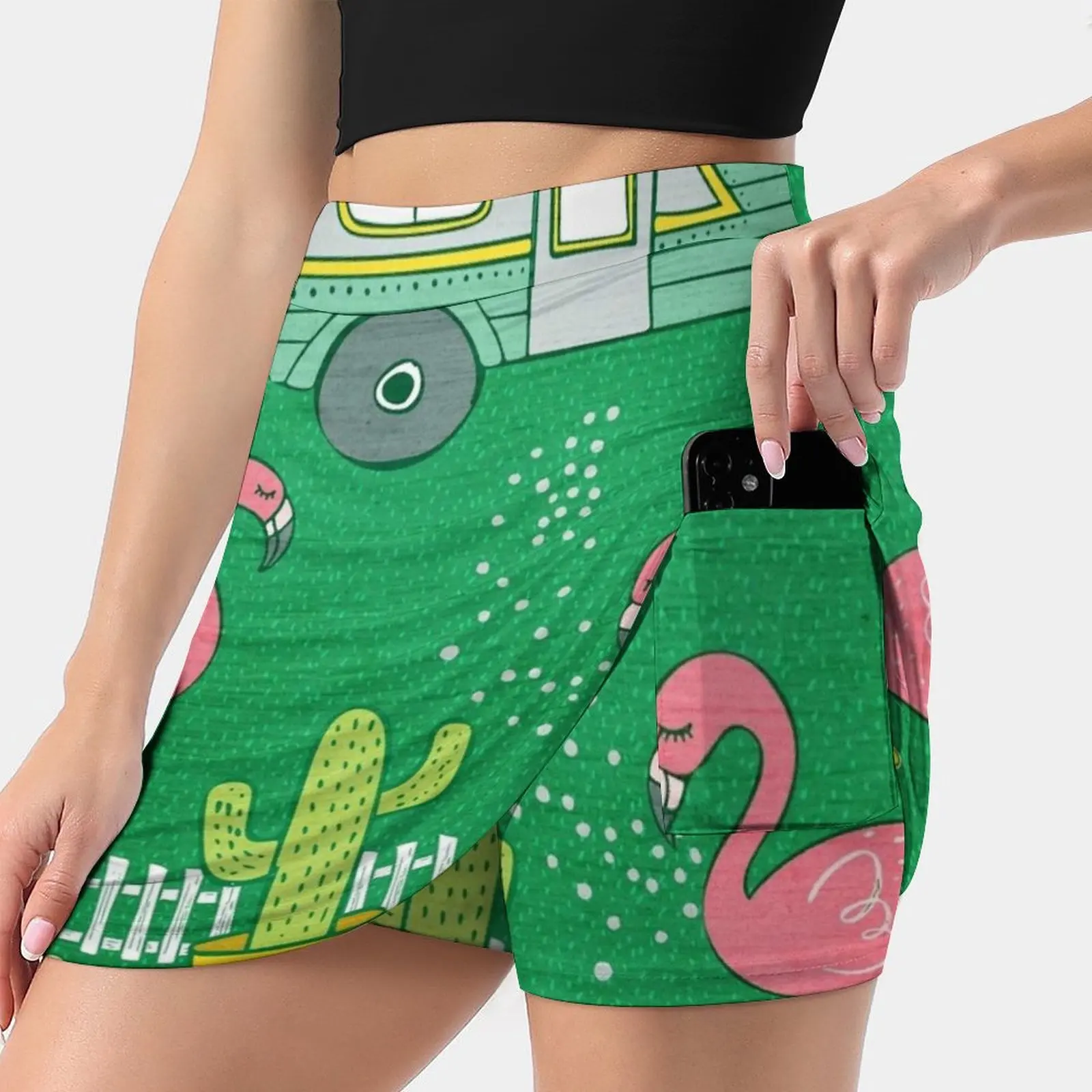 Женская юбка с фламинго для кемпинга, Спортивная юбка с карманами, модная юбка в Корейском стиле, юбки 4Xl, юбки с фламинго, для кемпинга