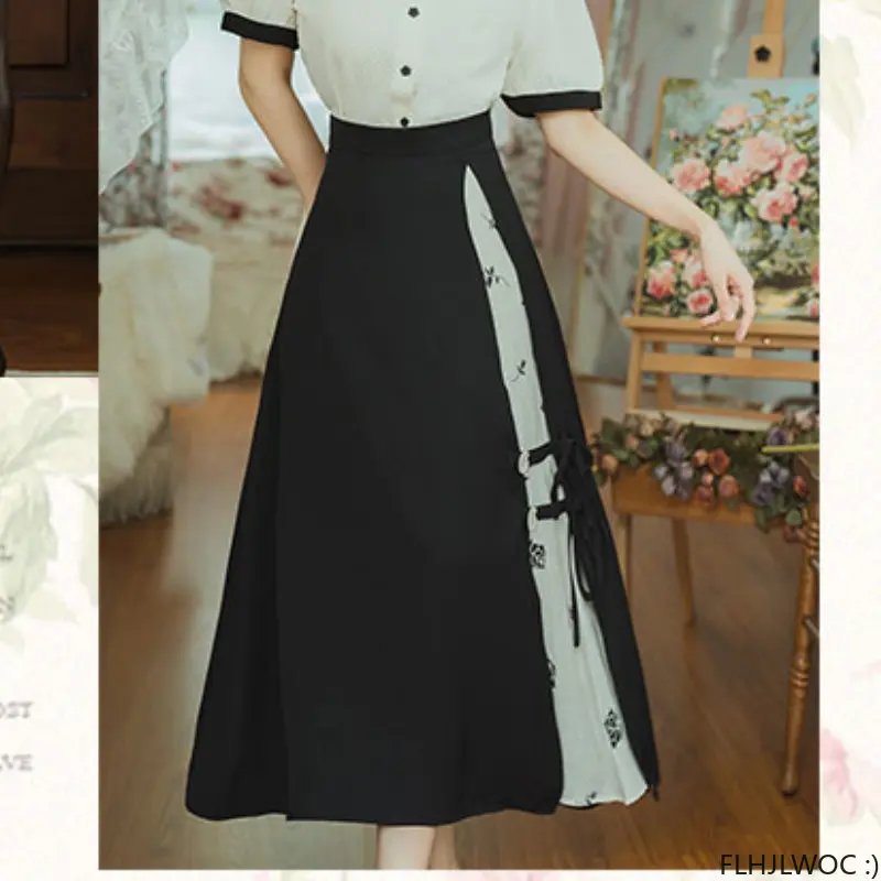 Женская юбка-туника с высокой талией, черная длинная юбка составного кроя в Корейском стиле, новый дизайн