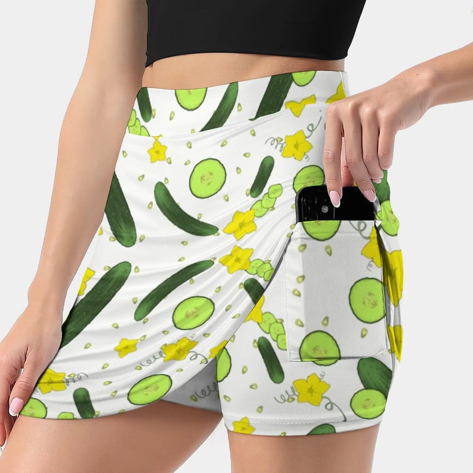 Женская юбка-шорты 2 в 1, с принтом огурцов и цветов, зеленая и желтая летняя юбка для фитнеса и йоги, теннисные юбки, веганский фрукт