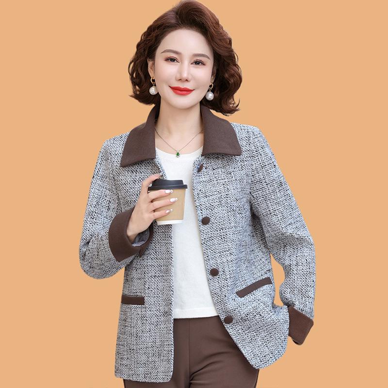Женская 2025 Весна и Осень Цветочная Куртка для Мамы - Приталенная, Стильная, Короткая 5XL серый