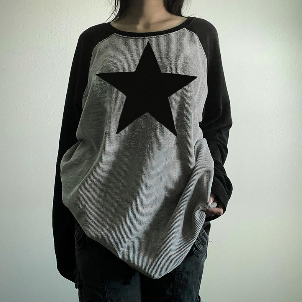 Женская Harajuku со звездным принтом, осенняя повседневная свободная футболка больших размеров, винтажная толстовка L