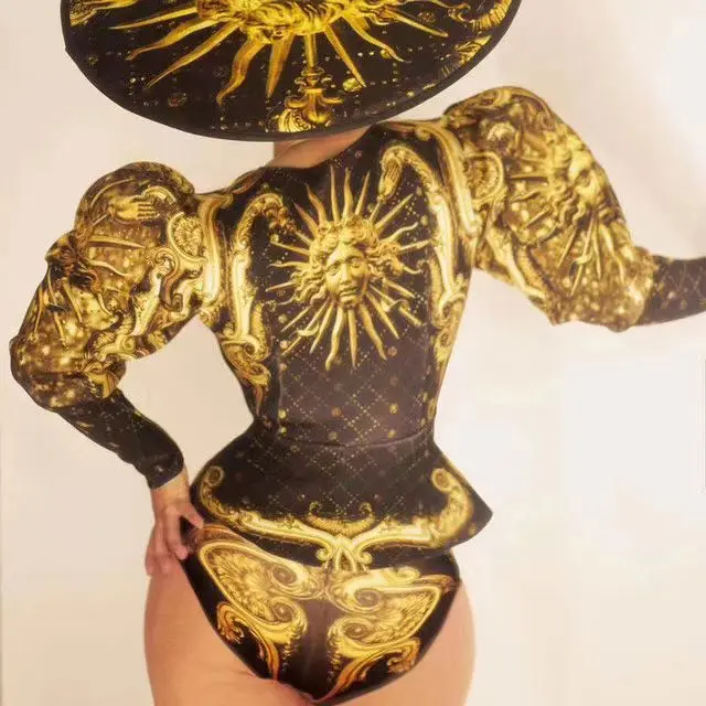 Женские Боди с принтом в виде солнца, декоративный костюм, одежда для музыкальных клубов и сцены, кардиган на пуговицах с длинным рукавом, костюмы Drag Queen