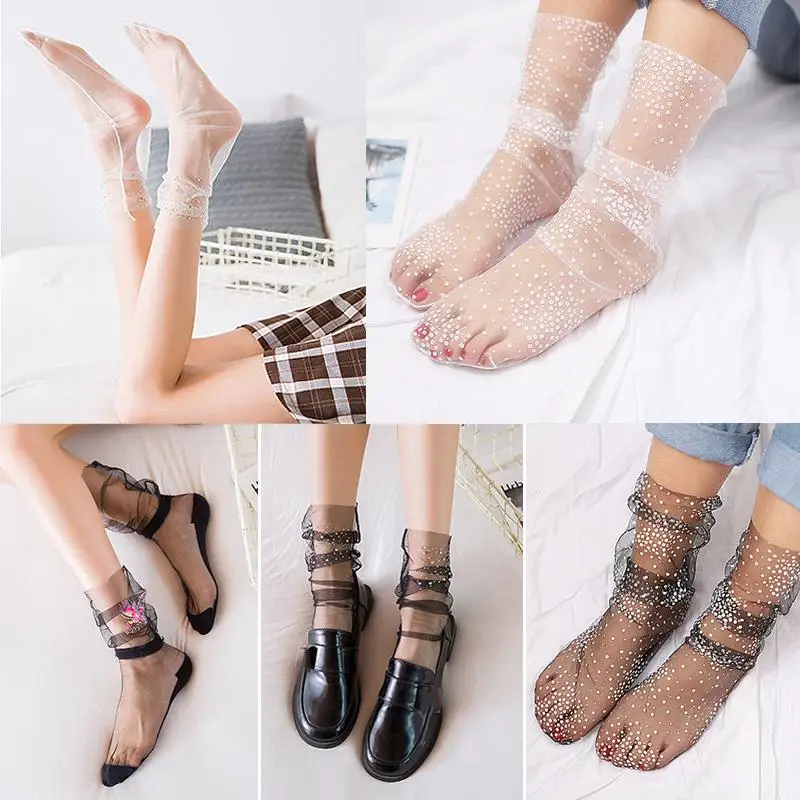Женские Дышащие прозрачные сетчатые носки в стиле Харадзюку в мелкий горошек, женские сетчатые носки в горошек, женские сексуальные носки