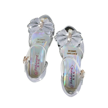 Girls Rhinestone Shoes Glitter Sandal Kids High Heel Shoes Crystal Shoe for Children (Size 28 Inner Length 18.5cm Silver)
