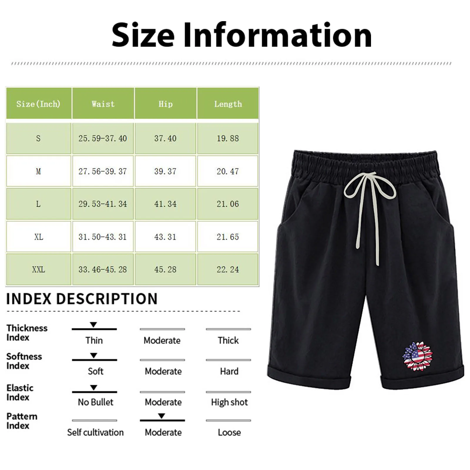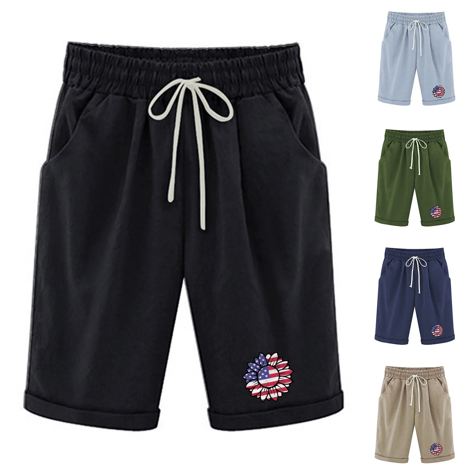Женские Летние Шорты стрейч с принтом на тему Дня независимости