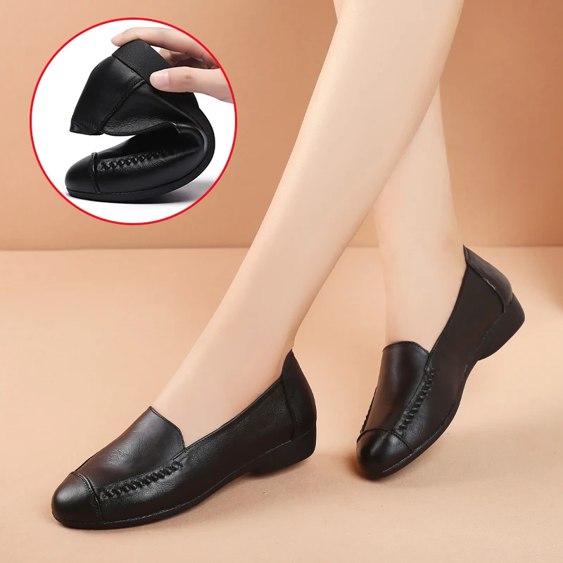 Женские Летние слипоны из натуральной кожи с круглым носком, Размеры 35-41