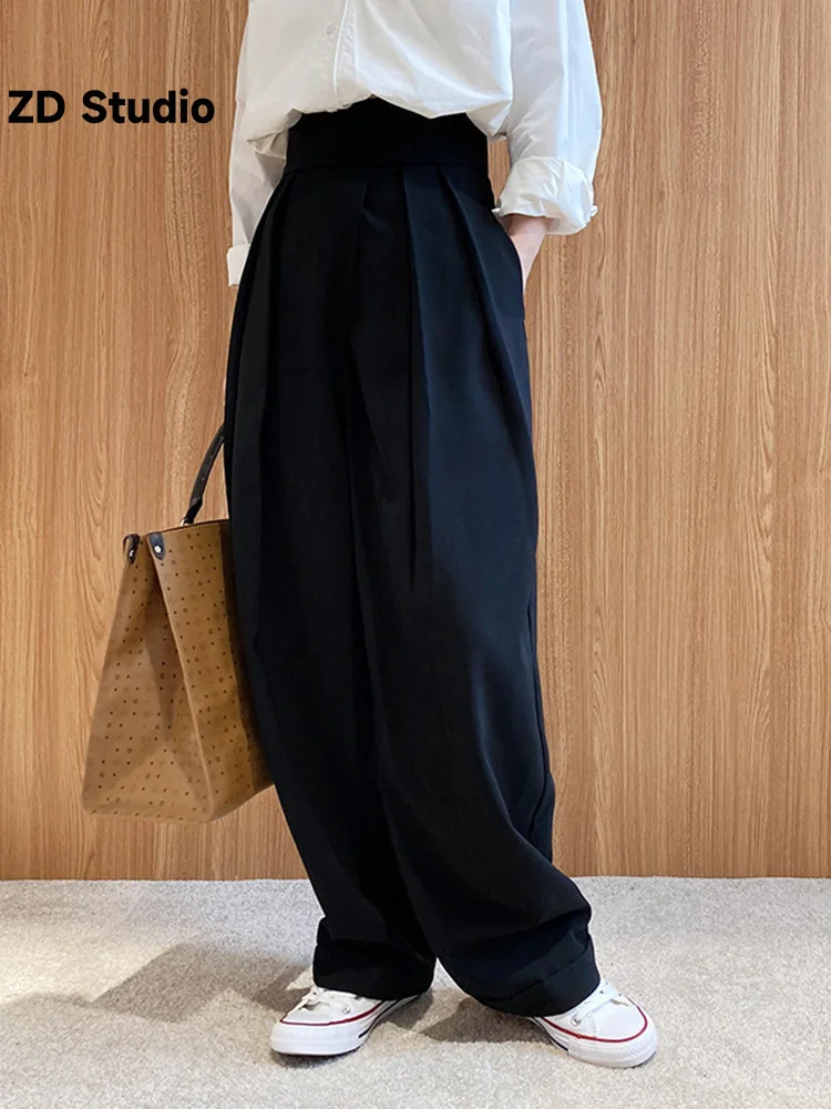 Женские Плиссированные широкие брюки [ZD Studio], черные свободные брюки с высокой талией, новинка сезона весна-осень 2023, 1DF4547