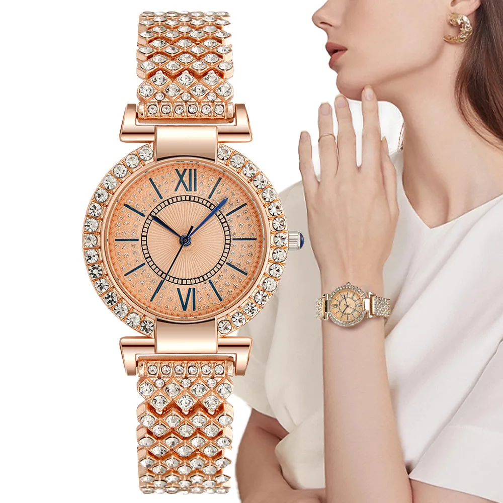 Женские Роскошные Кварцевые часы из нержавеющей стали с браслетом и платьем, 2023