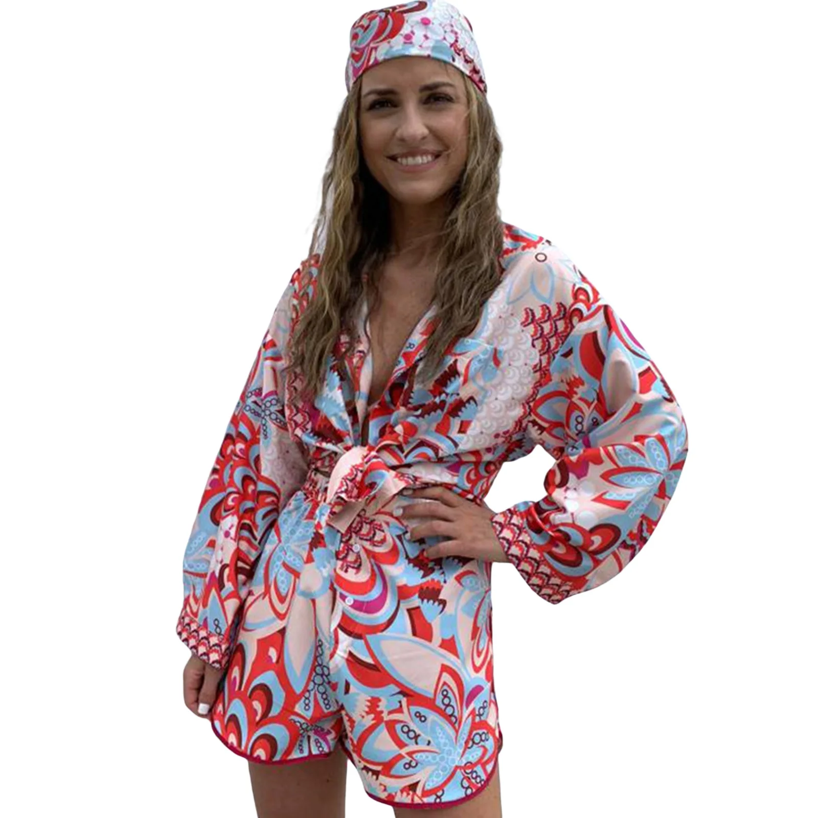 Женские атласные комплекты в пляжном стиле, модная рубашка с пуговицами на пуговицах и шорты с пейзажем, новинка 2022, Летние повседневные комплекты