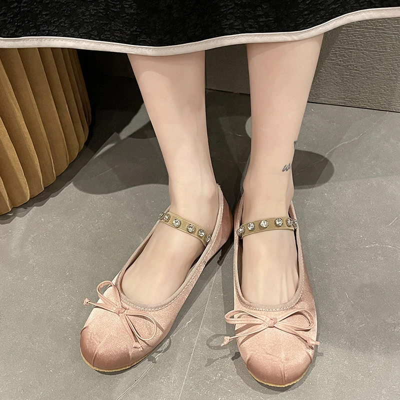 Женские балетки с кристаллами, туфли для танцев на плоской подошве, удобные туфли Мари Джейн с бантом, лето 2023