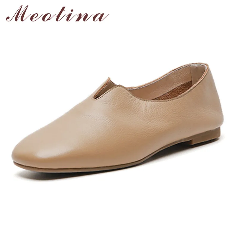 Женские балетки Meotina, из натуральной кожи, на плоской подошве, с квадратным носком, мягкие, размеры 34-39