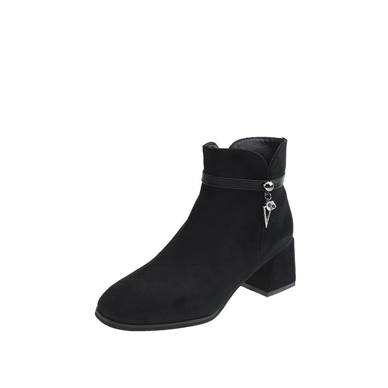 Женские бархатные теплые и очаровательные модные сексуальные высокие сапоги, кожаные туфли, модные сапоги на толстом каблуке, короткие женские сапоги 39 чёрный