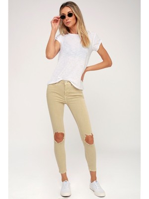 Женские бежевые джинсы скинни FREE PEOPLE с потертостями Размер, Бежевый, OB583769